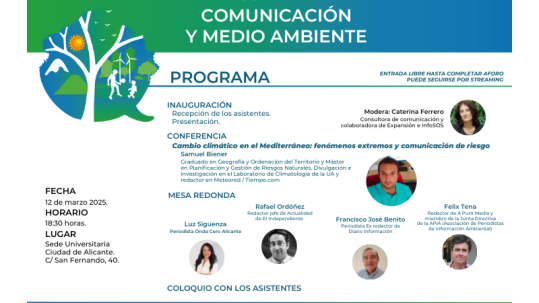 29 abril, 2025El cambio climático en el Mediterraneo y la comunicación del riesgo protagonizan la jornada sobre Comunicación y Medio Ambiente que tendrá lugar el......